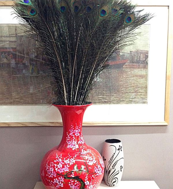 Trong văn phòng hay nhà ở có bài trí một bình cắm lông chim Công sẽ làm hài hòa âm dương, tăng cường vượng khí giúp tiêu trừ những điềm xấu, làm cho gia đình êm ấm, công việc kinh doanh thuận lợi. Là một vật phong thủy mang đến nhiều may mắn, bên cạnh đó nó cũng là vật trang trí khá sang trọng, thanh nhã thể hiện phong cách của chủ nhân.