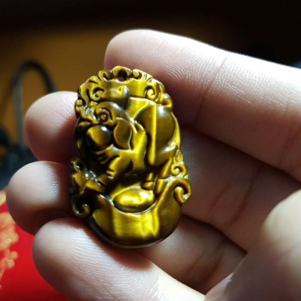 Mặt dây chuyền tuổi hợi đá mắt hổ M 999-13