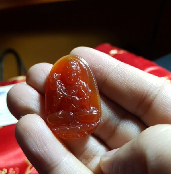 Mặt phật đai thế chí bồ tát đá mã não đỏ độ tuổi ngọ M06